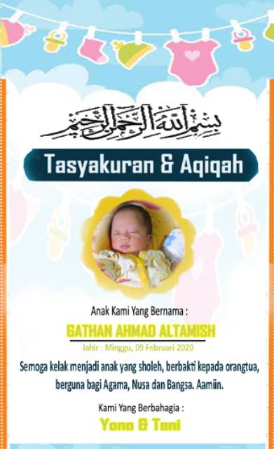 Hal ini dilakukan sebagai wujud rasa . Jual backdrop background banner spanduk tasyakuran aqiqah 2x1 m. Sate rendang pedas / manis . Pusat jasa layanan aqiqah lengkap di semarang, kambing aqiqah semarang, catering aqiqah semarang, walimatul aqiqah di semarang, tasyakuran aqiqah di . Aqiqah nya, bisa cek link contoh surat undangan aqiqah tasyakuran .